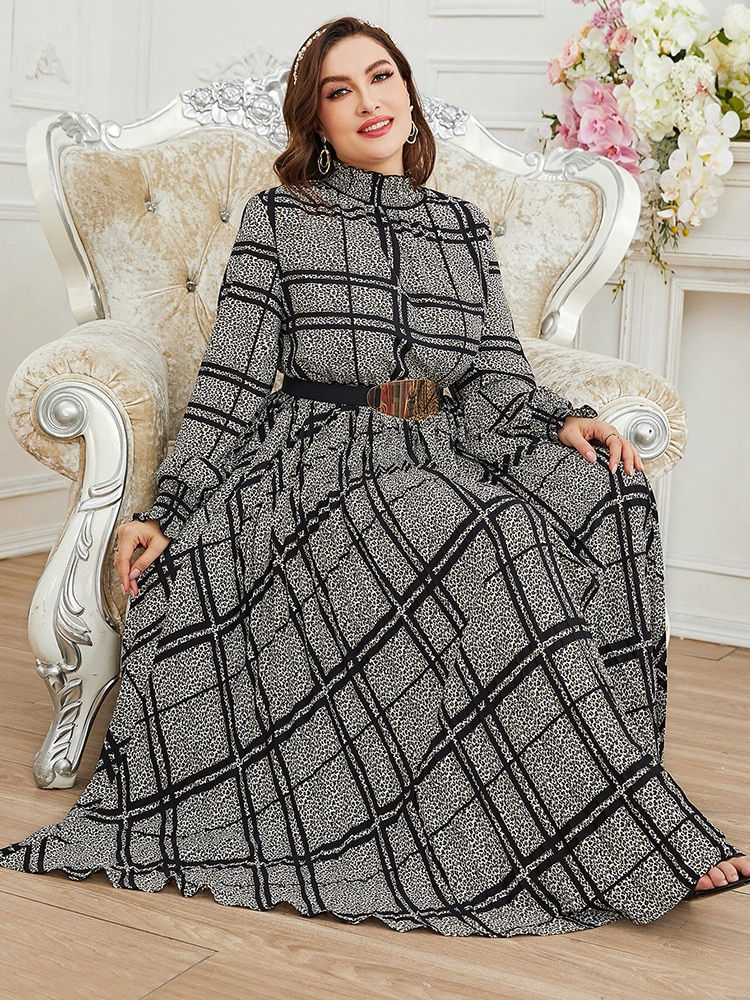 Women Plus Size Large Maxi Dress Elegant Long Sleeve Muslim